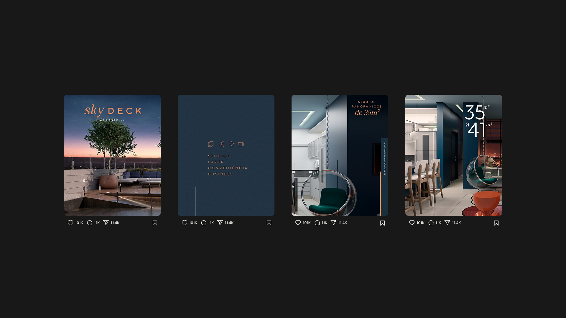 Do retrofit da fachada à criação de áreas como SkyDeck e lavanderia compartilhada, conduzimos toda a jornada de reposicionamento, lançamento e pós-venda, gerando forte recall e esgotamento de unidades.